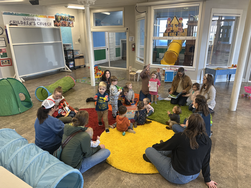 Tots & Co. is a playgroup for children ages birth to 5 years and their caregivers. This group meets at the church on Fridays from 9:30 am - 11:00 am during the school year and meets at parks around town during the summer months. Their time together includes songs, a Bible story, snacks, playtime, fellowship, and fun!